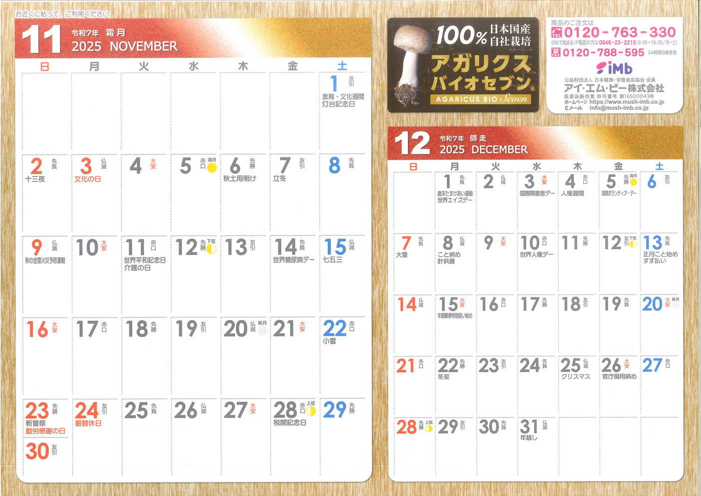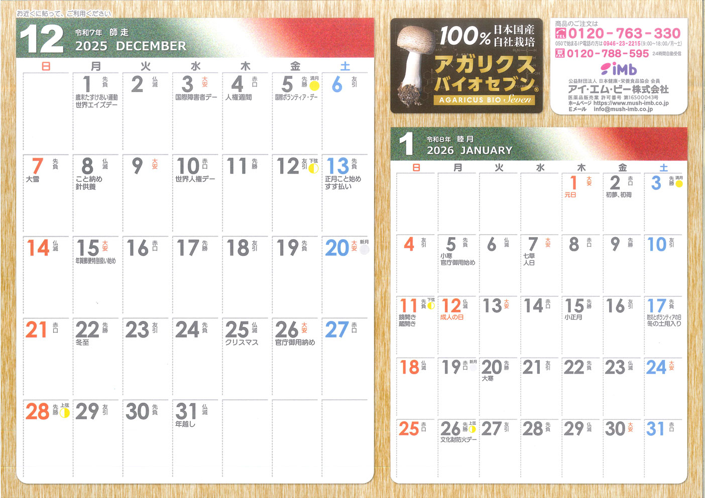 2025年 アイ・エム・ビー オリジナル! 2か月カレンダー